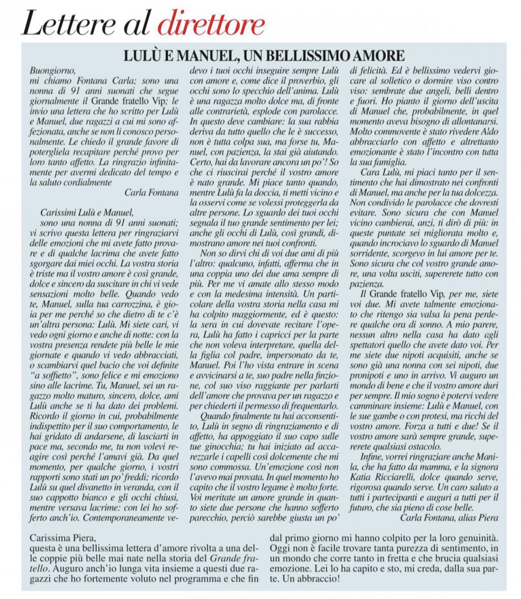 Lettera bellissima per lui